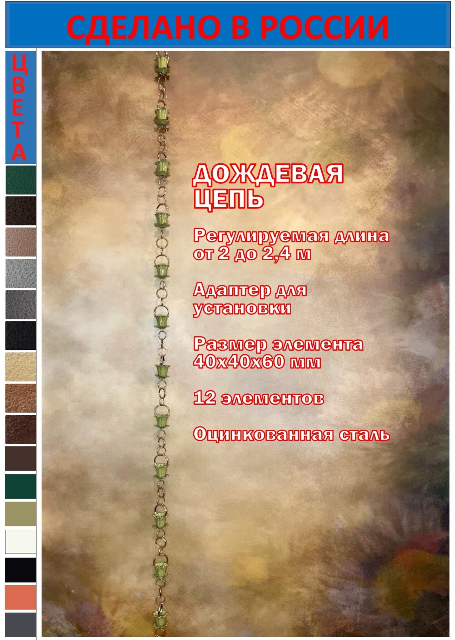 Дождевая цепь «Колокольчики и ромашки», оливковый RAL1020