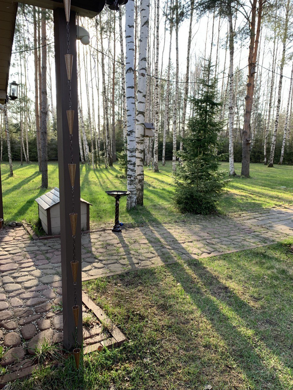 Позволяет не только избавиться от громоздких дорогостоящих водосточных труб, но и получать эстетическое удовольствие от вида ниспадающей воды, переливающийся по элементам цепи.