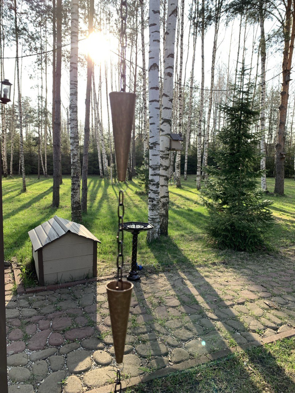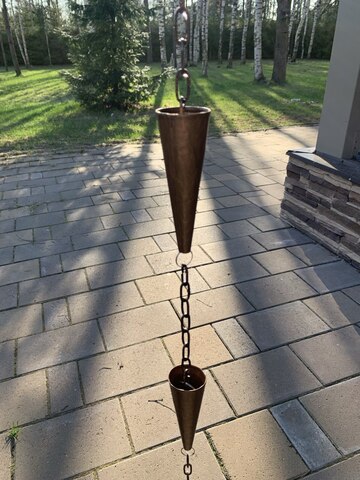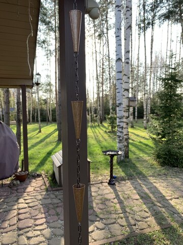 Дождевые цепи используются в течение сотен лет. Их можно встретить в домах и садах по всему миру. Дождевые цепи представляют собой красивую и функциональную альтернативу водосточным желобам для дождевой воды, образующую каскад проточной воды между чашками цепи.