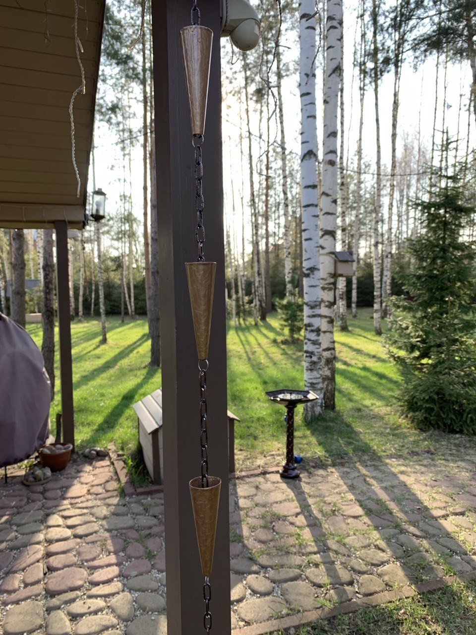 Декоративная дождевая цепь придает вашему дому уникальное украшение.