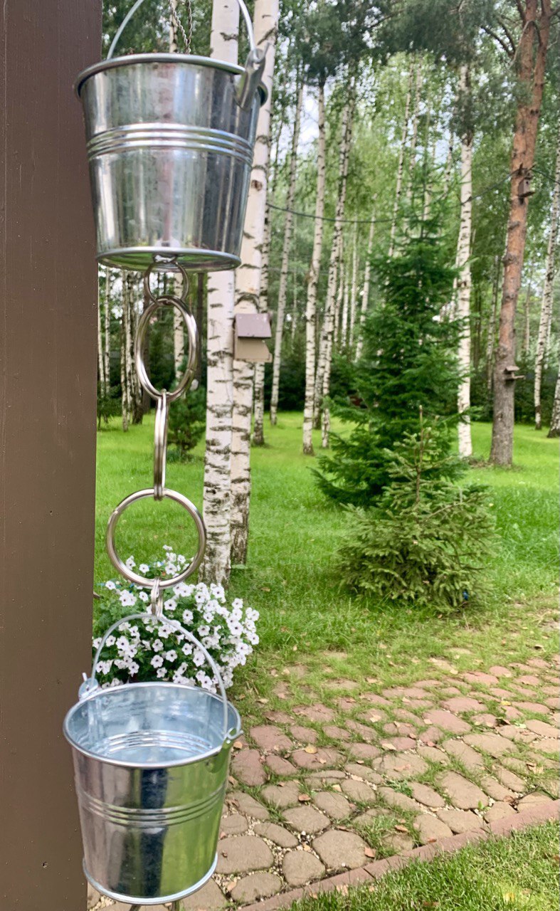 Декоративная дождевая цепь придает вашему дому уникальное украшение.